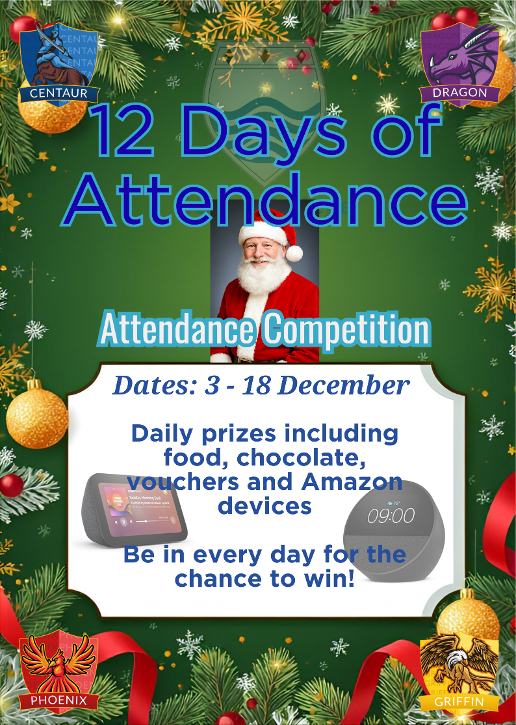 Etone College started the holiday season with its exciting 12 Days of Attendance competition, running from Wednesday 3rd December until the end of term. Each day, pupils and students who are in school, will automatically be entered into a prize draw—beginning with 12 prizes on Day 1, 11 on Day 2, and continuing until one final prize on the last day.