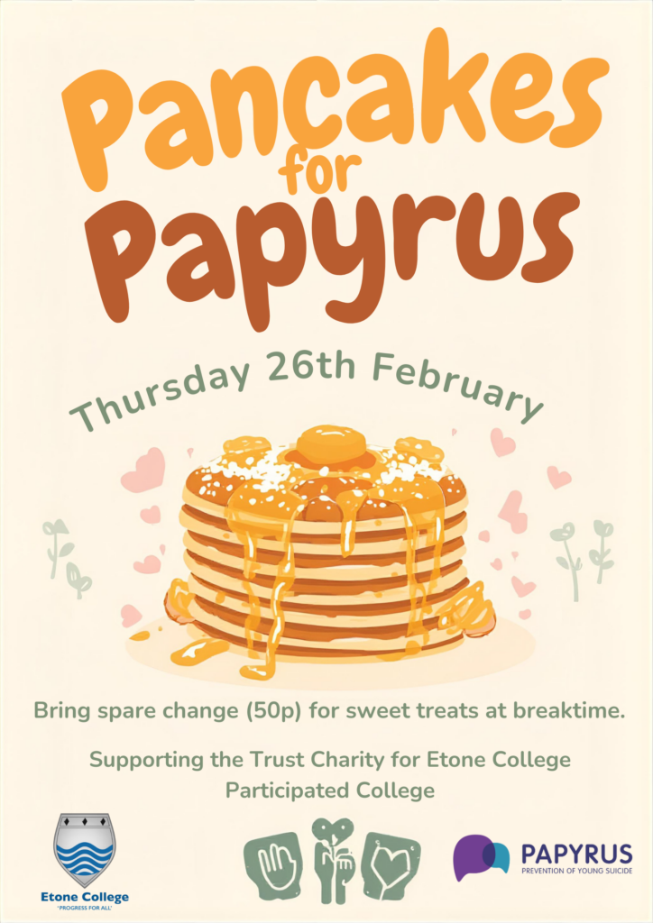 Following our return post half-term, we will be holding a fundraiser on Thursday 26th February selling pancake themes treats as part of our ‘Pancakes for Papyrus’ initiative.