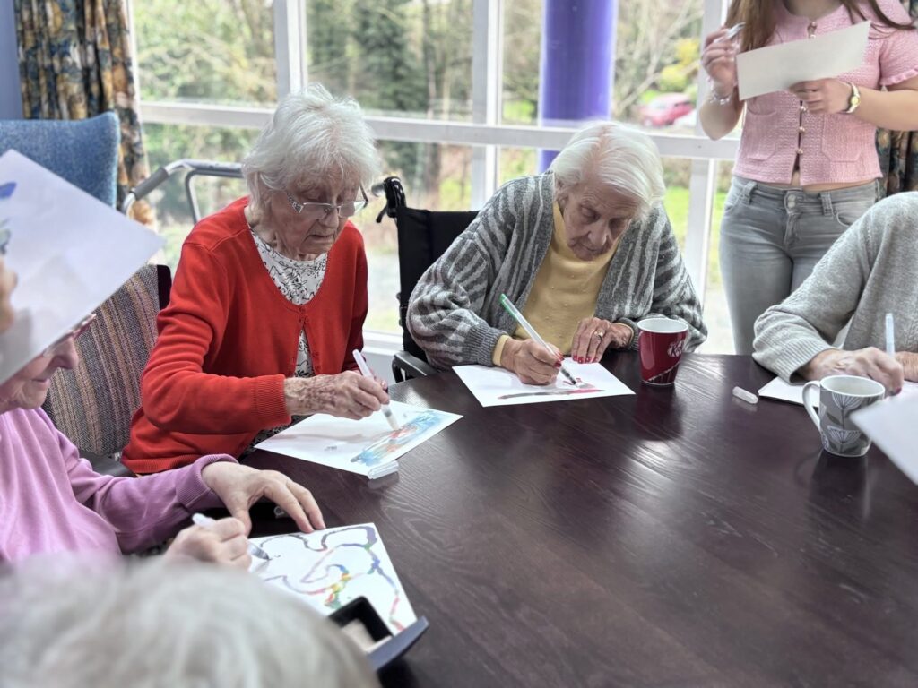 Over time, they’ve built lovely relationships by popping into the Nuneaton care home to see everyone and enjoy a mix of activities together, from painting sessions to sing-alongs with our Community Musician, Warren.